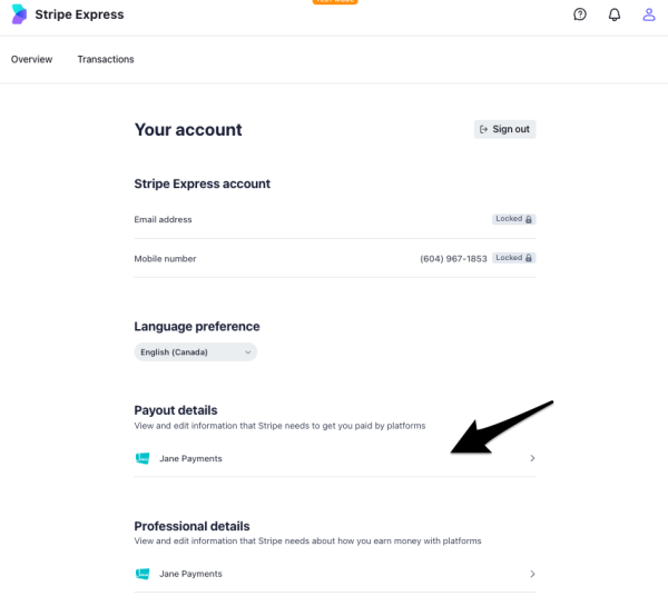 Then, scroll down to the Payout details area and click Jane Payments.