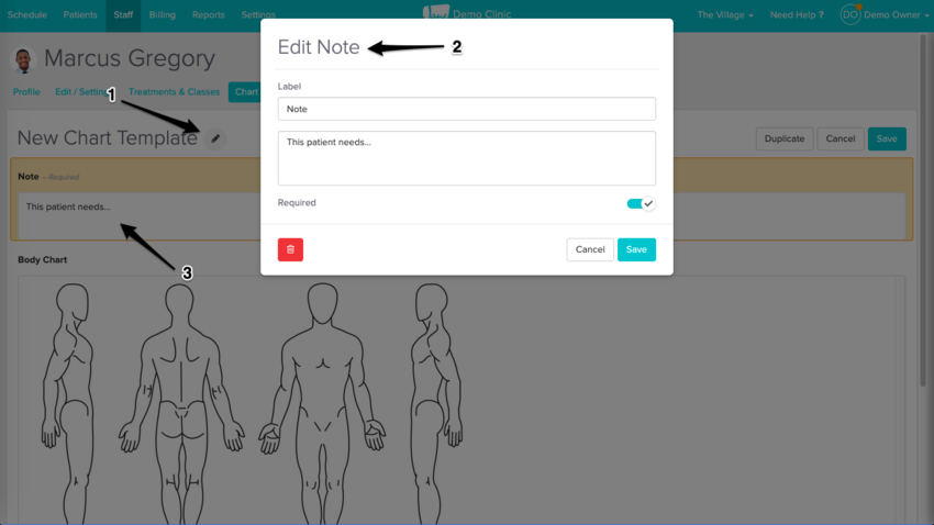 The Chart Template Name is the name you’ll use to identify and open the template when you go to chart on a client. To change that name, click the Pencil icon next to New Chart Template.