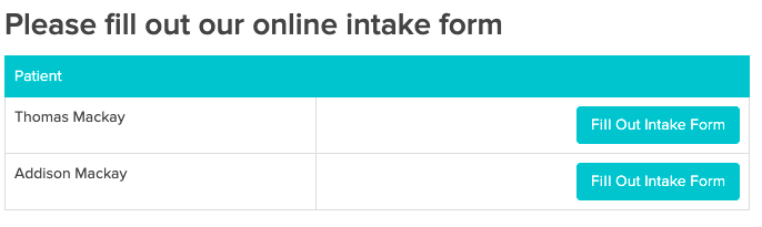 Since Thomas booked the appointment on behalf of Addison, he is able to see her pending intake form after booking the visit as well as in the Intake Forms area on his My Account page: