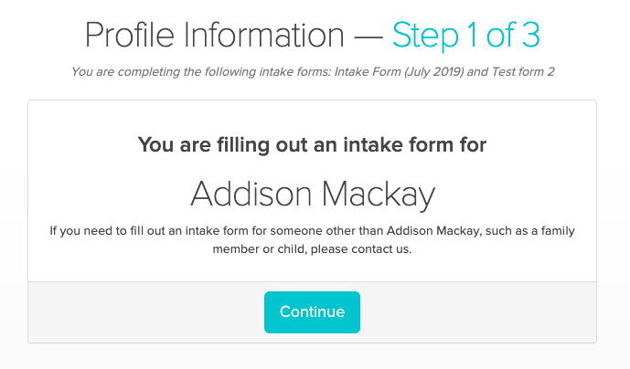 Thomas can also fill out Addison’s intake form from his profile by clicking the Fill Out Intake Form button.