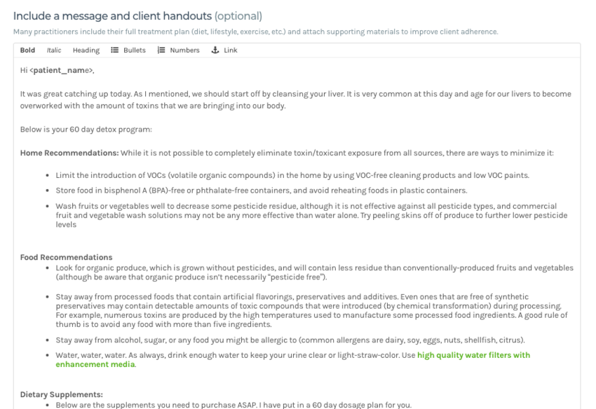 Similar to creating chart templates in Jane, you can create Fullscript recommendation templates for faster charting.