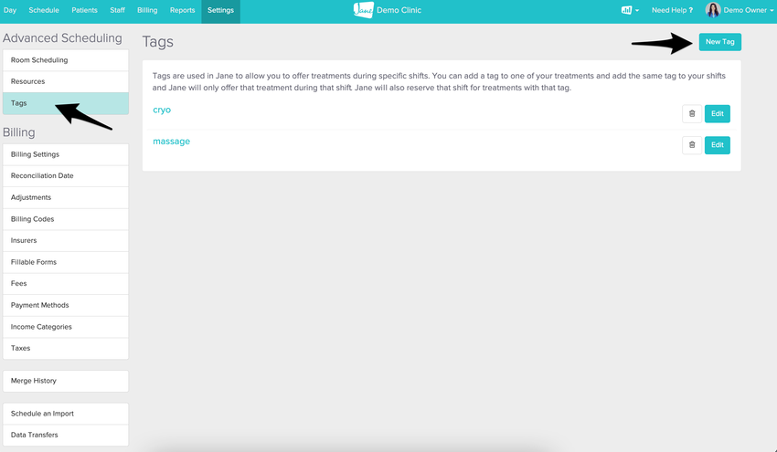 We’re going to create one tag per service offered. The tag(s) will then be added to one shift and the corresponding services offered.
