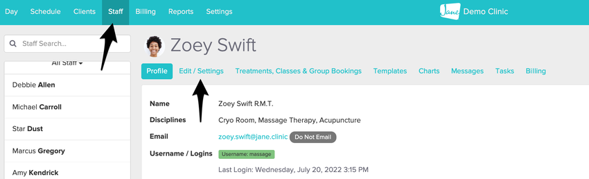 Hop into Staff and select the staff members’ profile with which we will add on this service.