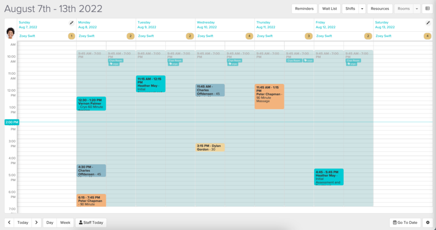 Now you’re all set! 🥳 Your finished schedule might look something like this- allowing for one shift for your personal treatments with patients, and another shift for the service.