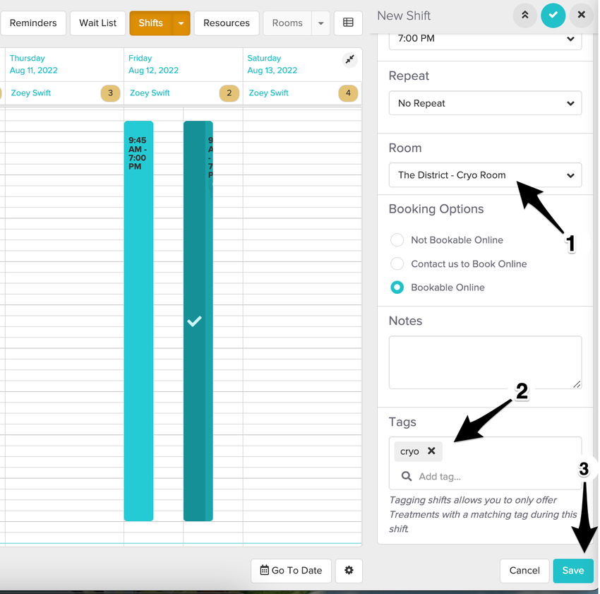 Now let’s ensure the correct services get booked into the designated shift when being booked online.