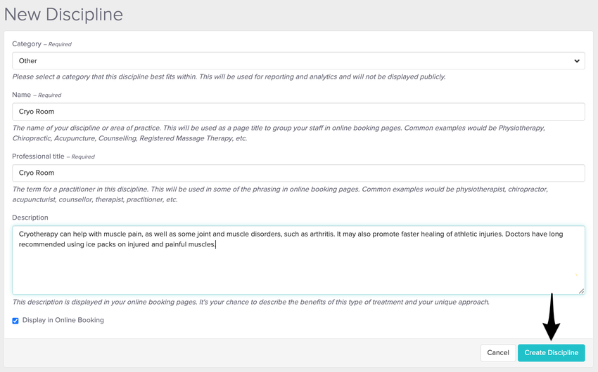 Add the appropriate information for your discipline and hit the Create Discipline button.