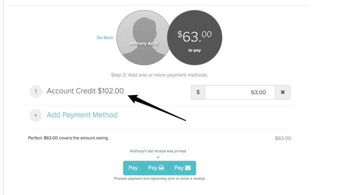 Select the treatment you want to pay off as normal in the first screen and click next. You will be given the Credit as a payment option to pay off the invoice.
