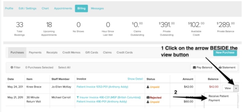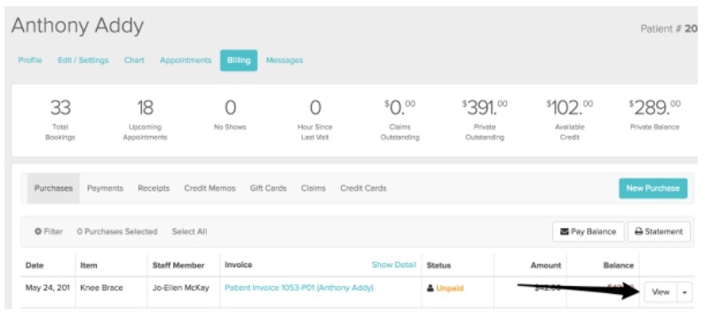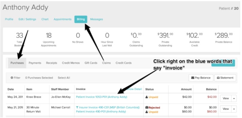 3a - To manually adjust the price as a one time change you can now access the unpaid invoice directly from the patient’s Billing_Purchases tab: