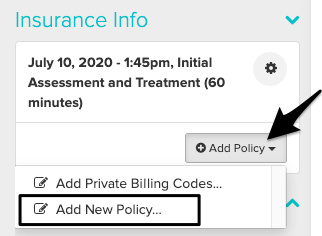 From the appointment pane, choose Add Policy and then Add New Policy.