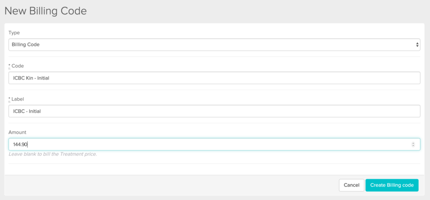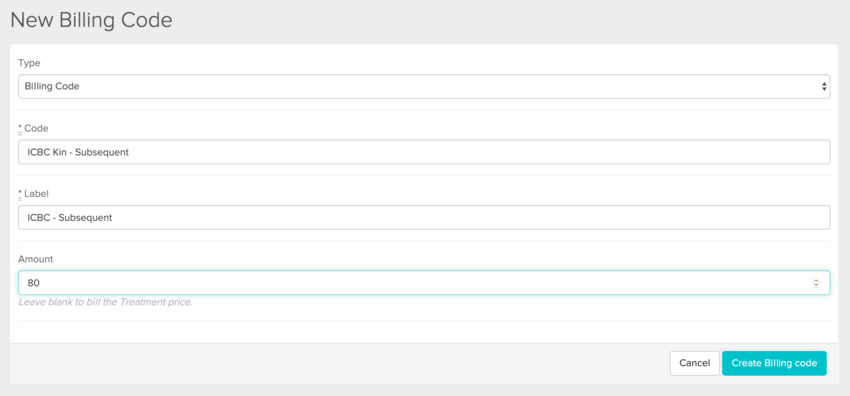 Custom billing codes can be created by heading to Settings > Billing Codes > New Billing Code