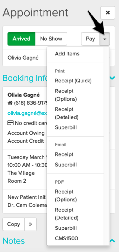You can generate a superbill for an appointment after you’ve added billing codes.