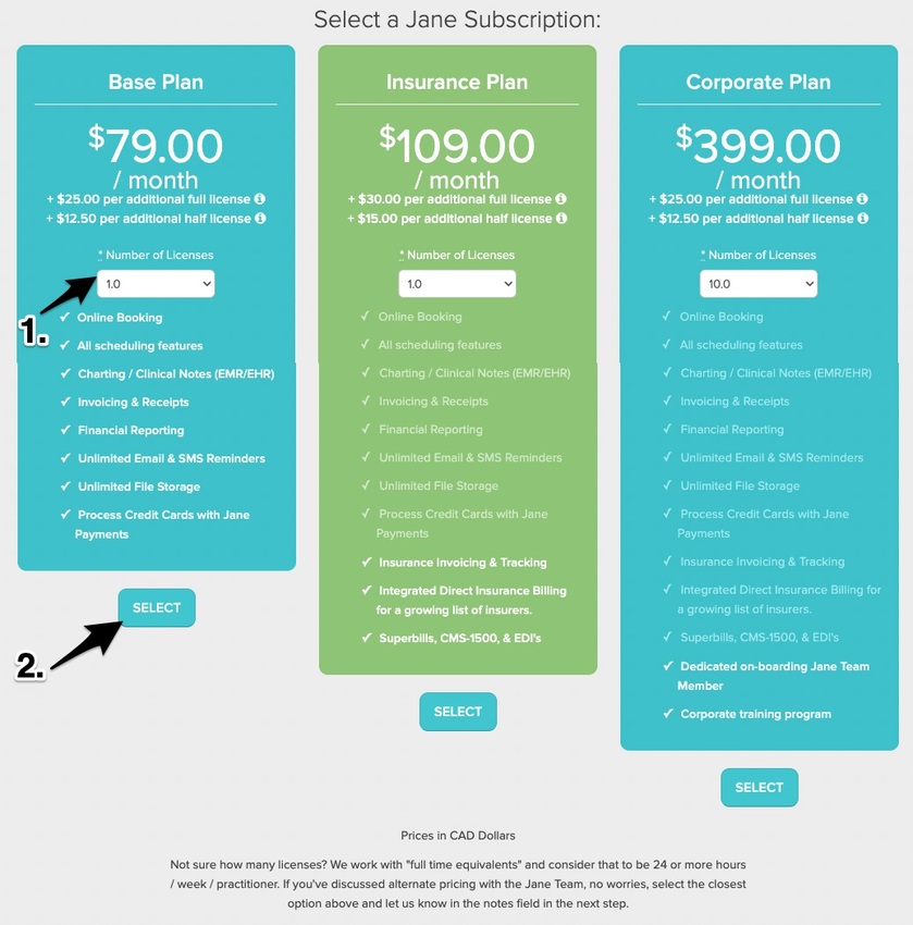 Ensure that you click on the Select button below the plan that you have changed and Jane will take care of the rest!
