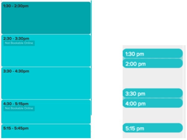- The practitioner also has their online booking start times set to start on the 30 minutes