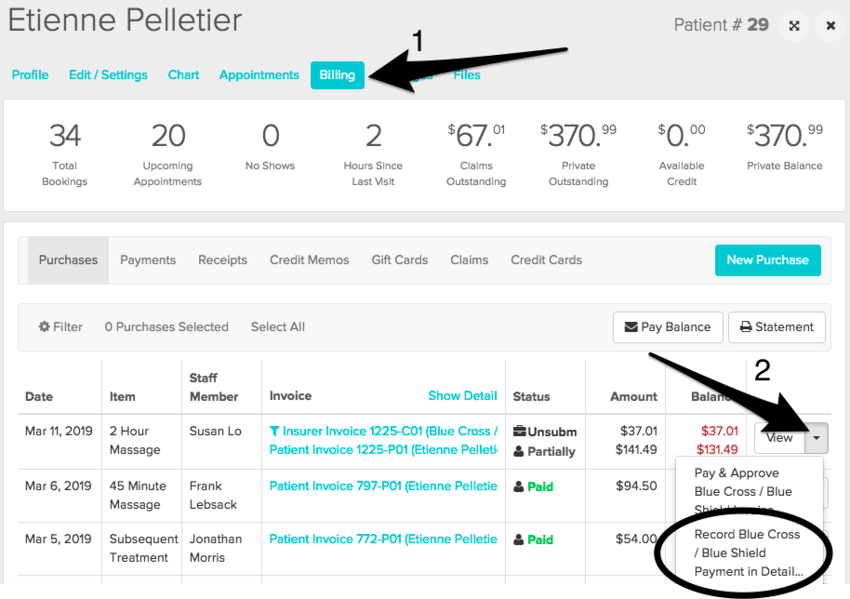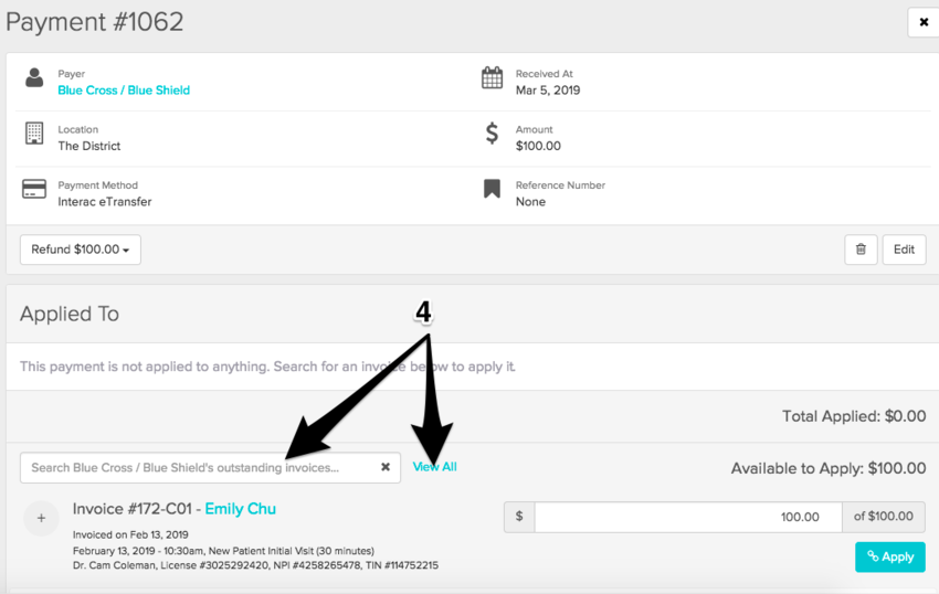 You can receive an insurer payment from the appointment side panel, from the invoice, and from Billing > Insurer Invoices.
