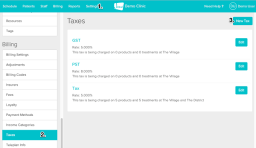 Once created, you can edit your products and treatments to be taxable as needed. To edit a product, head to Settings > Products or Settings > Treatments & Classes and click to edit.