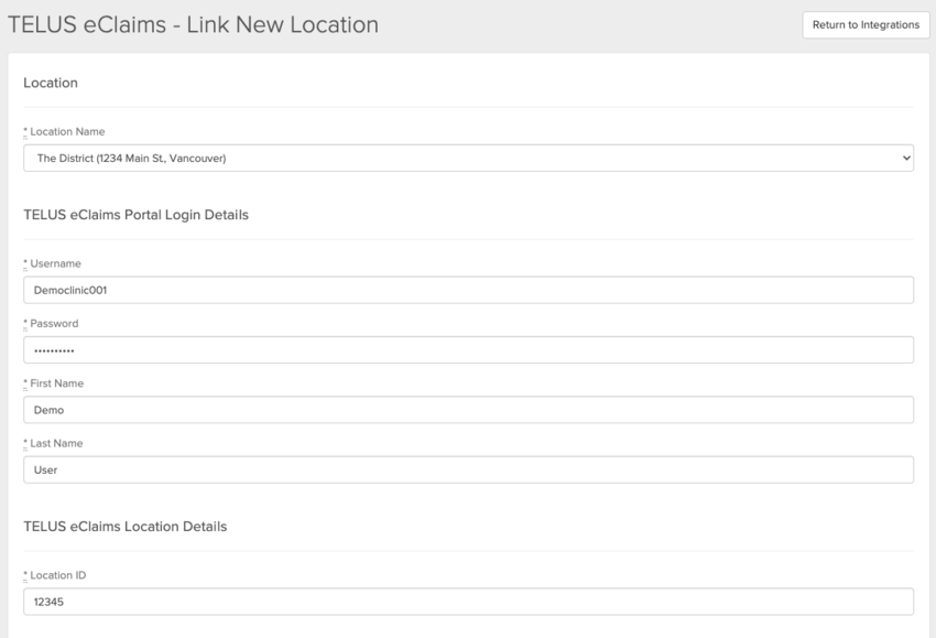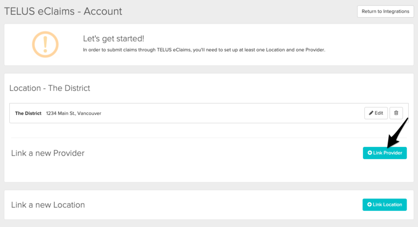 Head on over to the Settings tab of your account and then select Integrations > TELUS eClaims > Get Started.