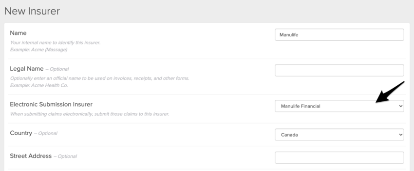 To add a new TELUS insurer, head to Settings > Insurers, select “New Insurer”, and add a new TELUS eClaims insurer.