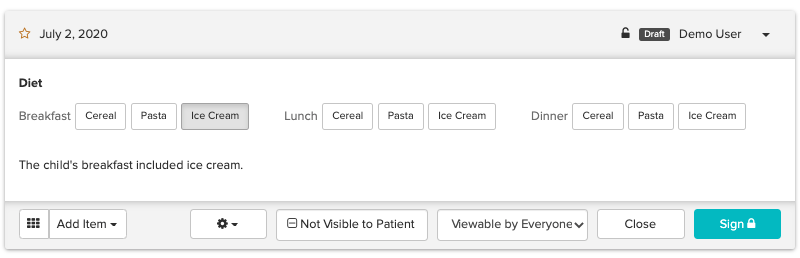 Short Label is an alternative label that can be displayed while charting. The longer choice name will appear on the signed note. Here’s an example of a short label using emojis to replace words: